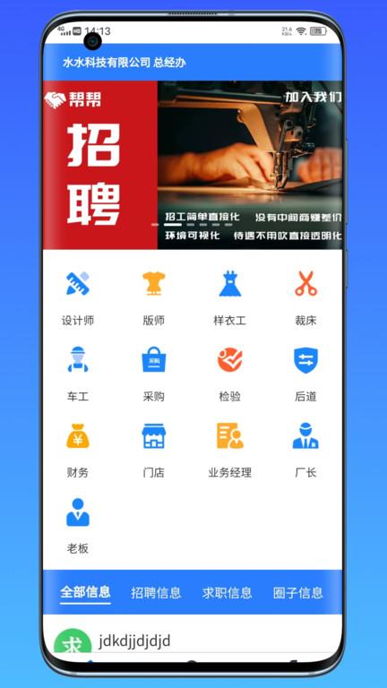 在这里可以申请我的岗位,包含了设计师、样衣工、裁床、车工